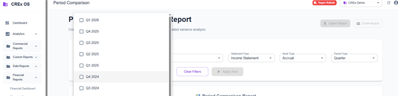 Financial reports now support flexible period comparisons. Users can compare data across multiple custom periods, enabling more precise trend analysis and performance evaluation.