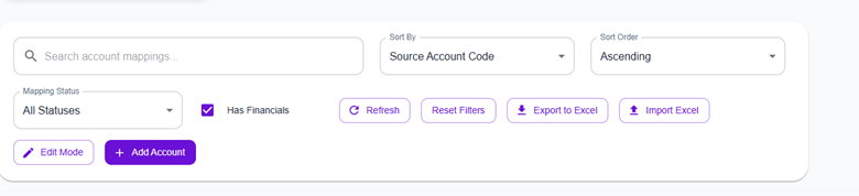 A new “unmapped with financials” field has been added to Chart of Accounts management. This enhancement helps identify accounts that have financial activity but are not properly mapped. Visibility was improved through revised hasFinancial logic and the removal of the active filter.