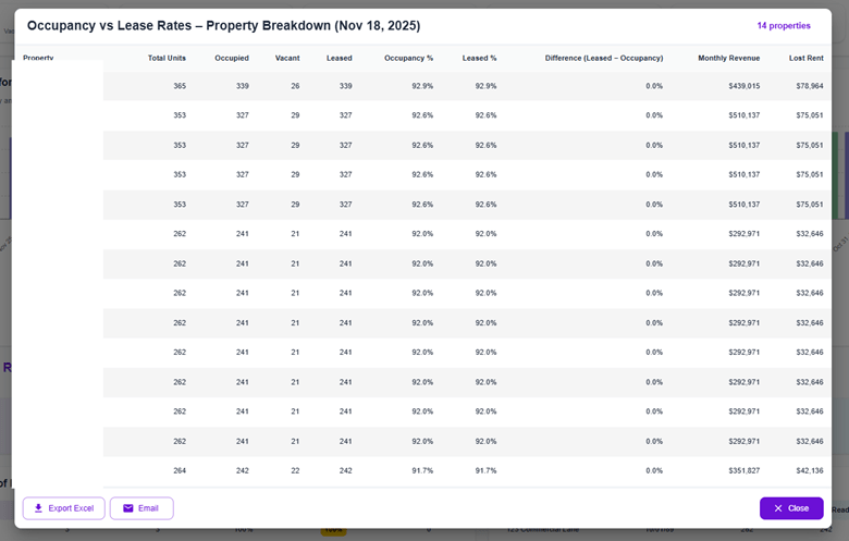 Property-level breakdown in multifamily occupancy report