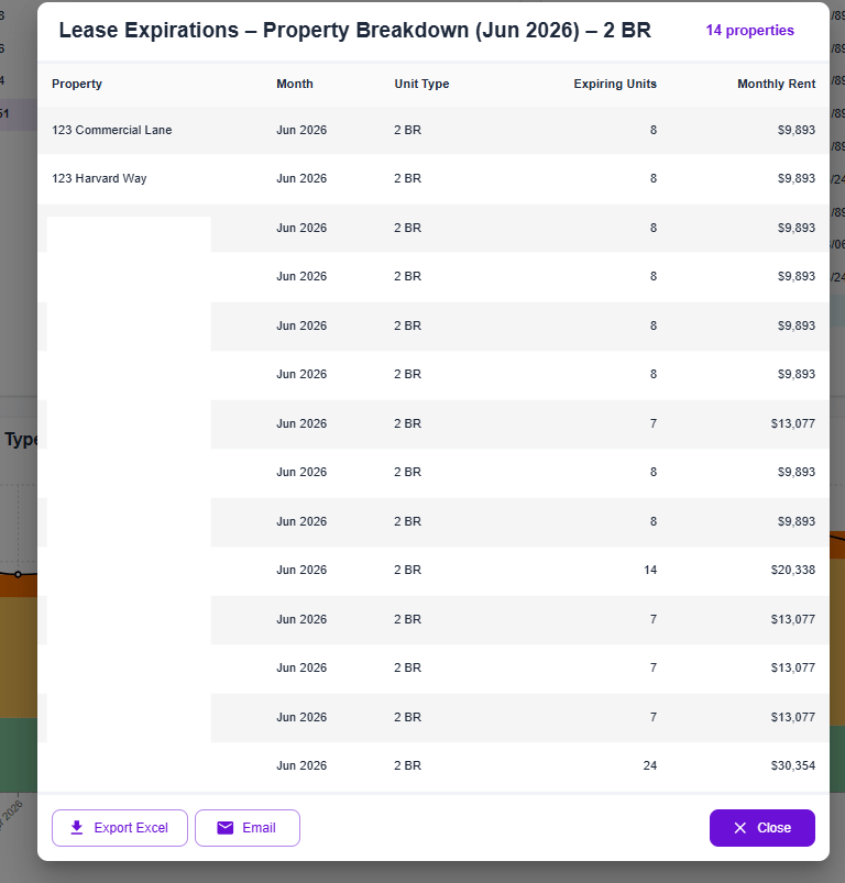 This week’s updates focus on deeper drill-down capabilities, expanded property-level visibility, and improved ways to view, export, and share data across multifamily, financial, and leasing workflows. Below is a summary of the new features and enhancements released between January 30 and February 5, 2026.