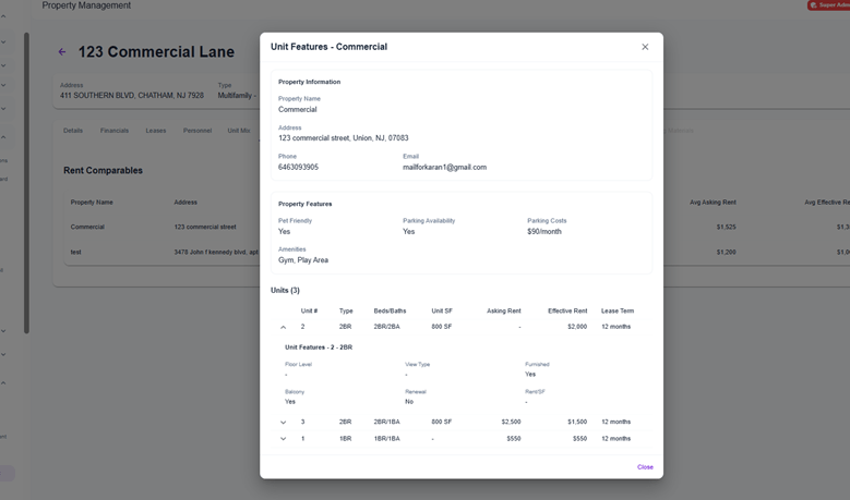 The leasing comparables multifamily feature has been fully redesigned and rewritten with a new user interface and updated core logic. This enhancement includes a new component structure, improved data handling, and supporting database migrations to deliver a more robust and scalable comparables experience.